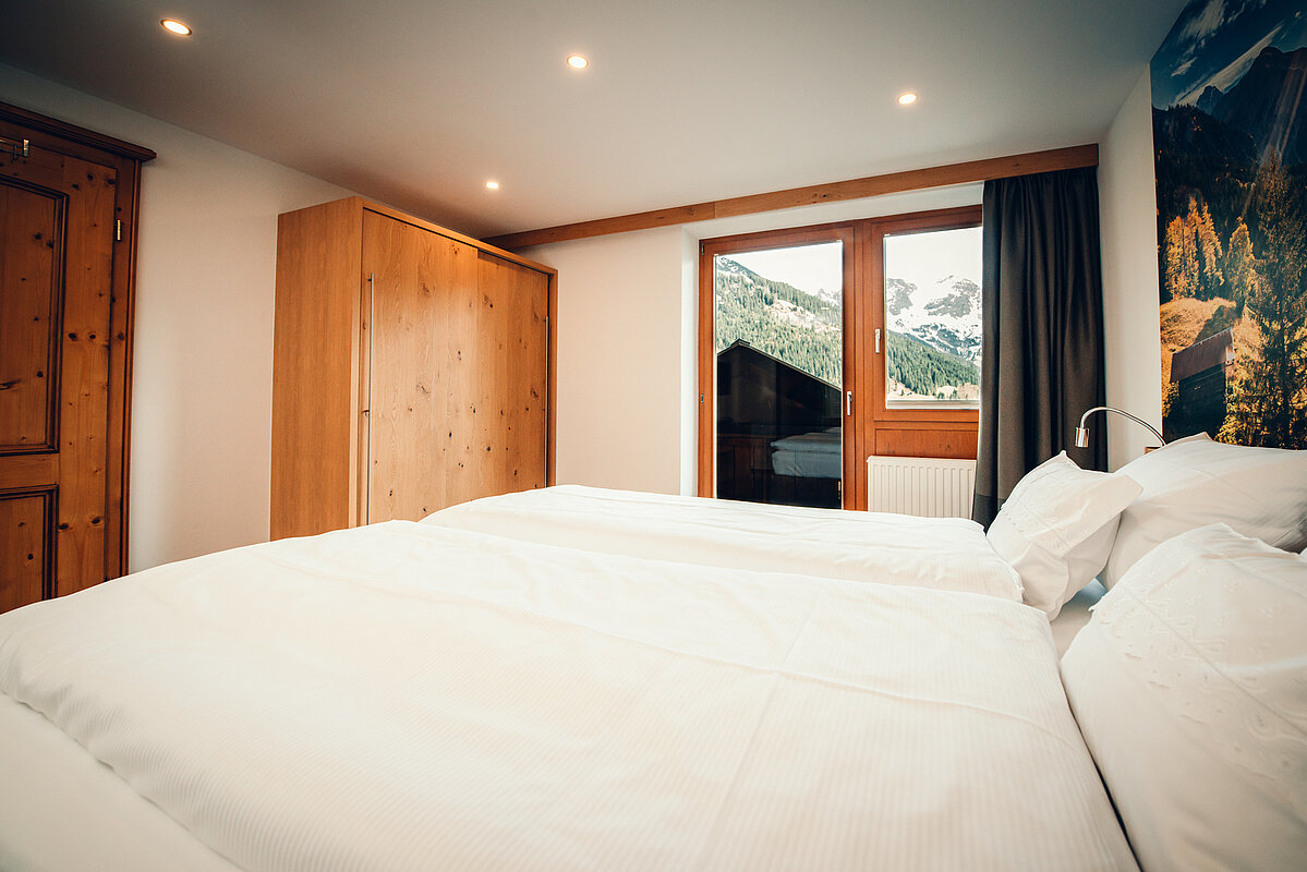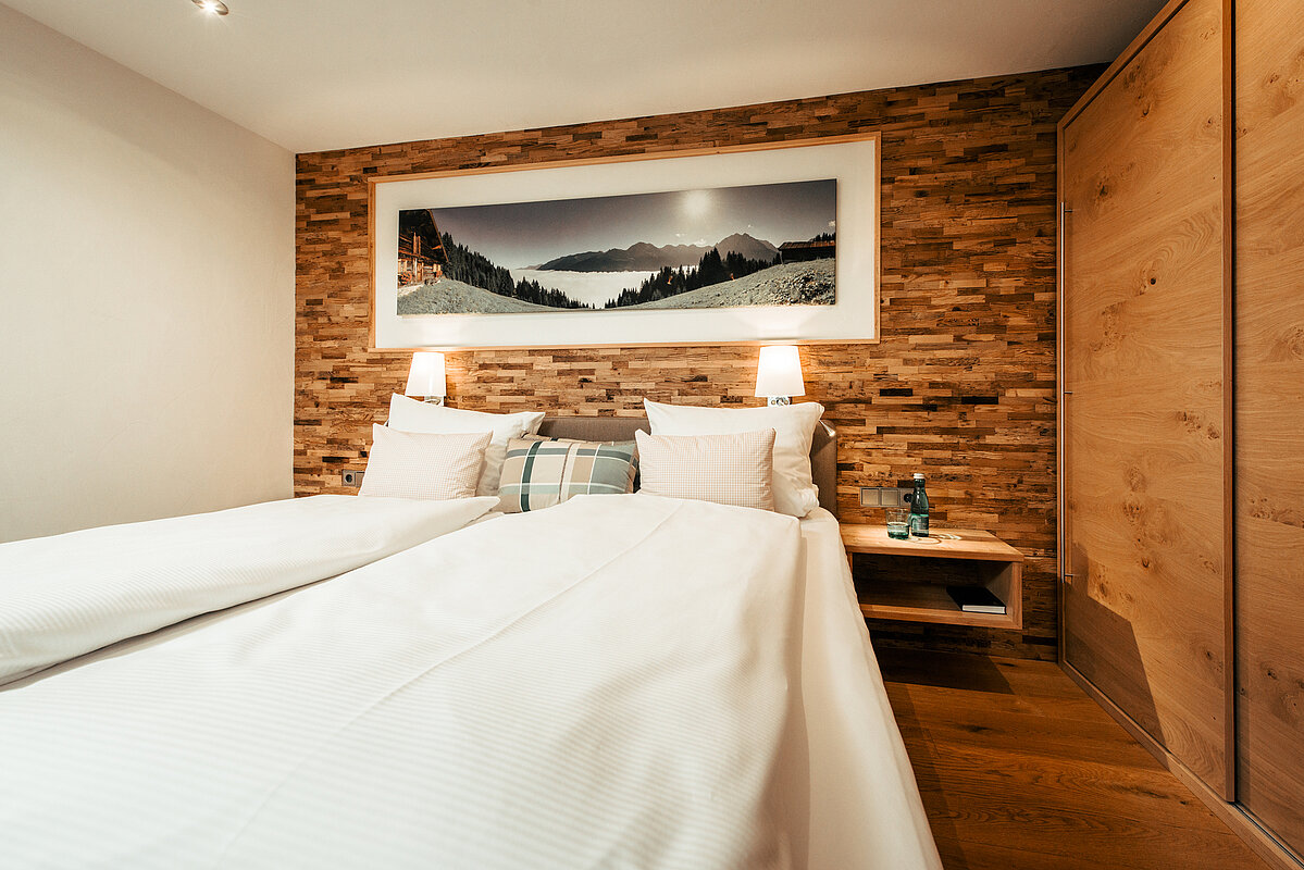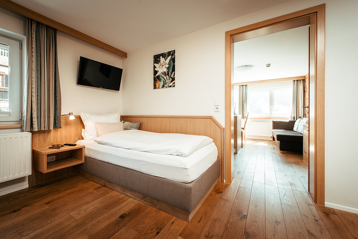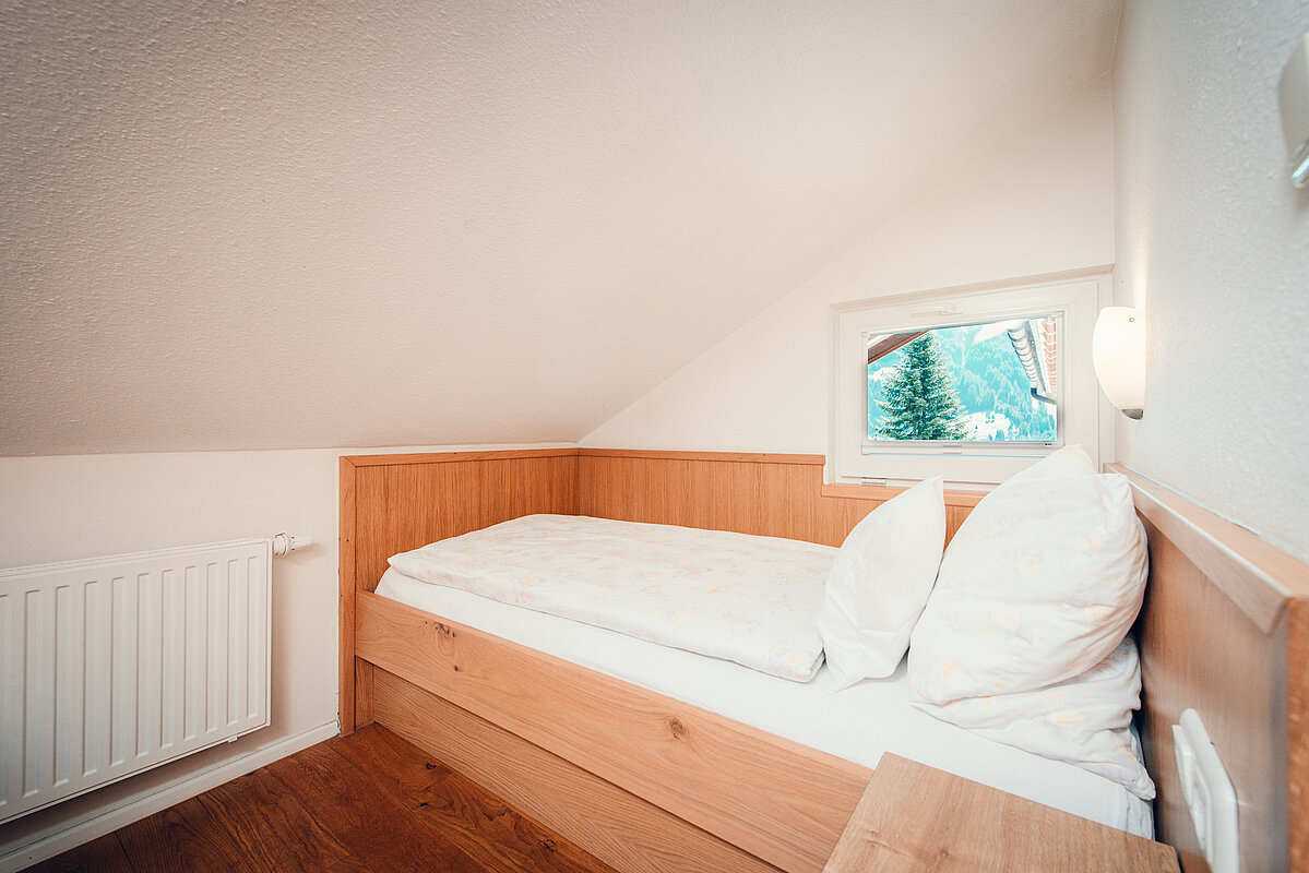 - slaapkamer met tweepersoonsbed en eenpersoonsbed