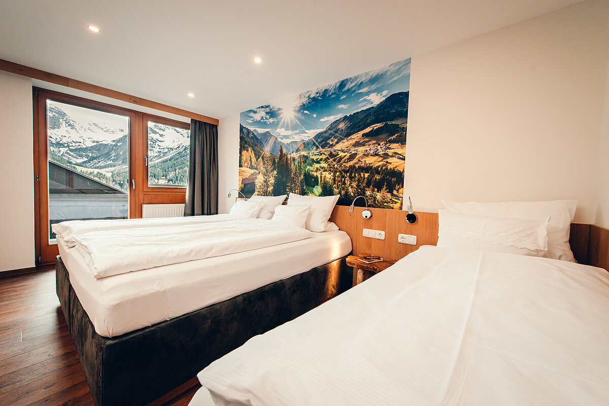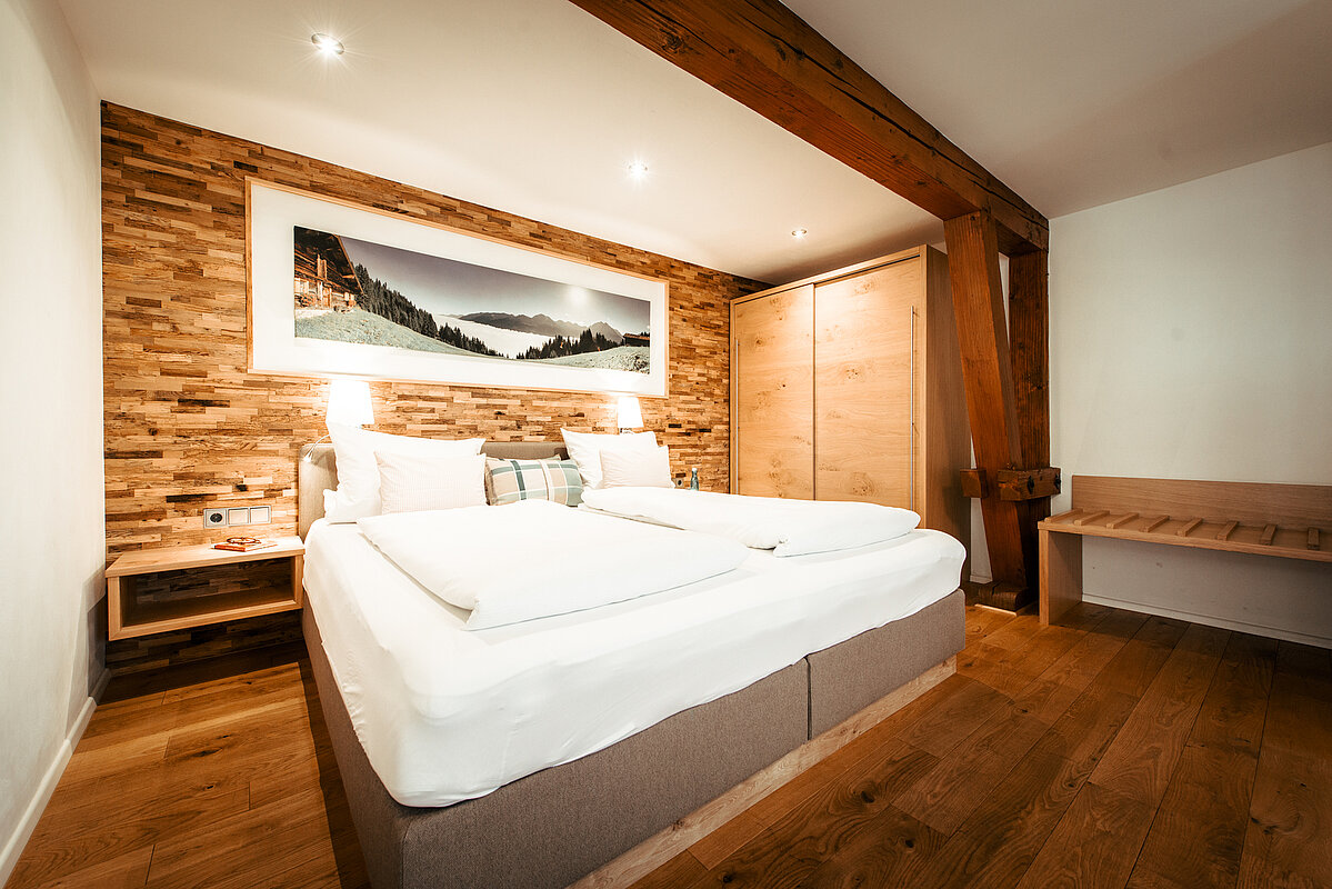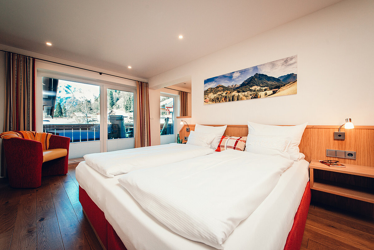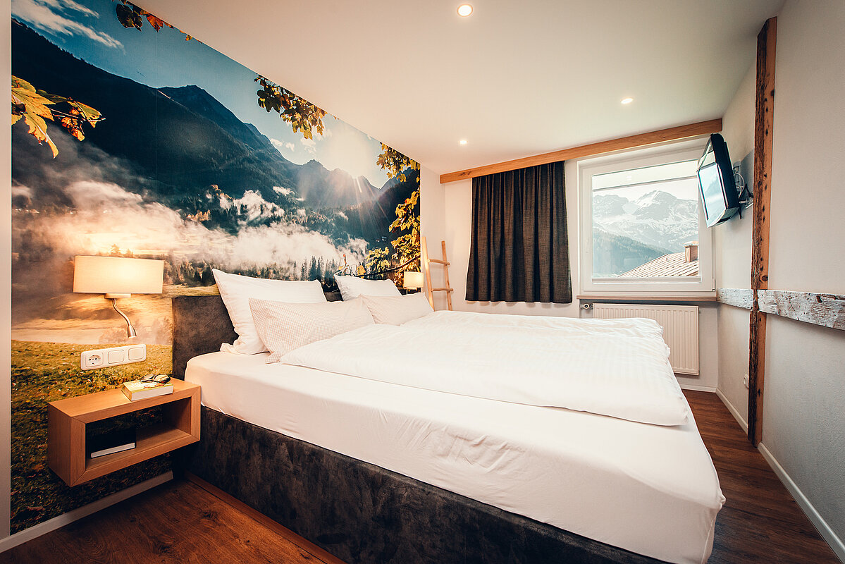 - slaapkamer met tweepersoonsbed en eenpersoonsbed