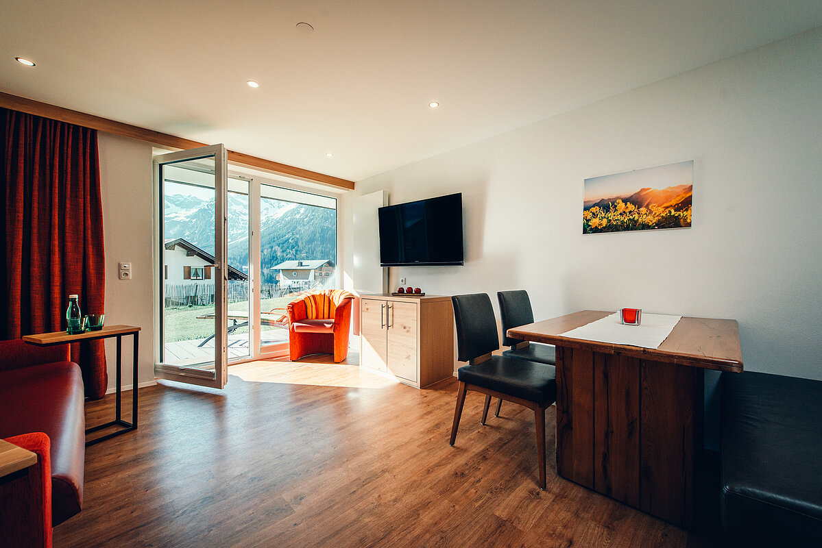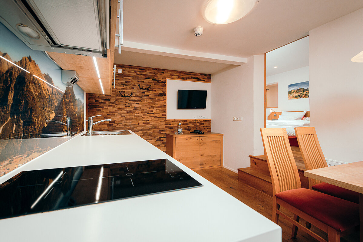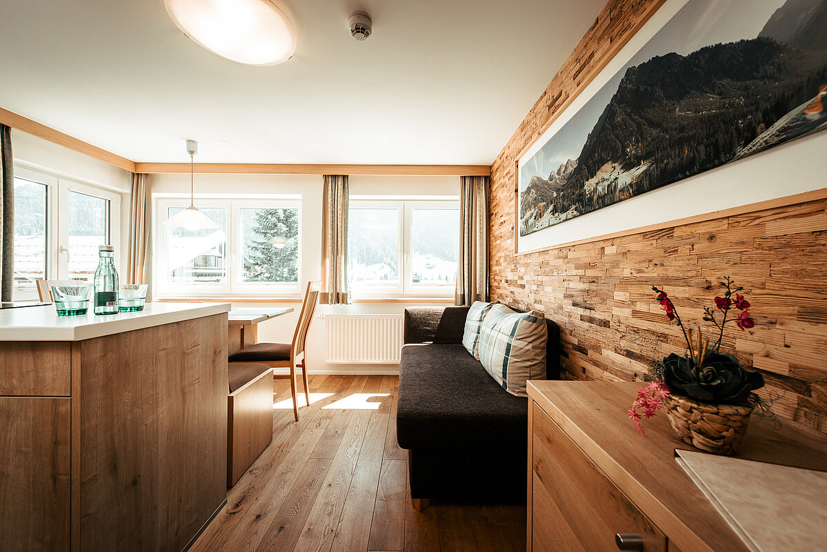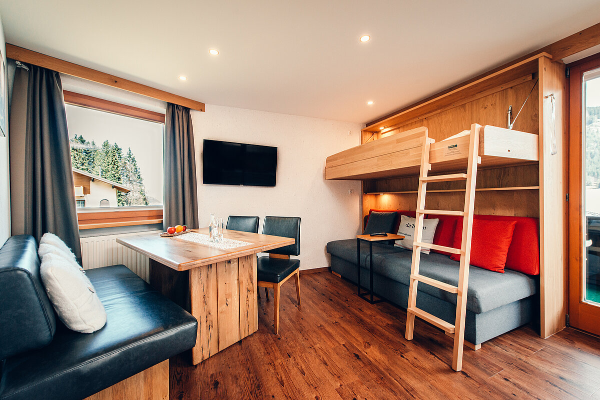 - woonkeuken met bank en opklapbed, vaatwasser, eethoek/zithoek