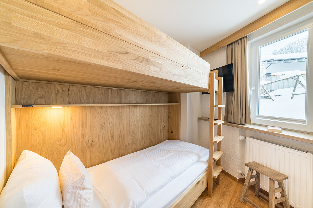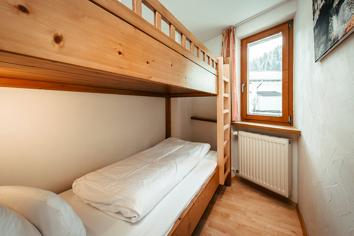 - slaapkamer met tweepersoonsbed, kleine slaapkamer met stapelbed 90cm x 200cm